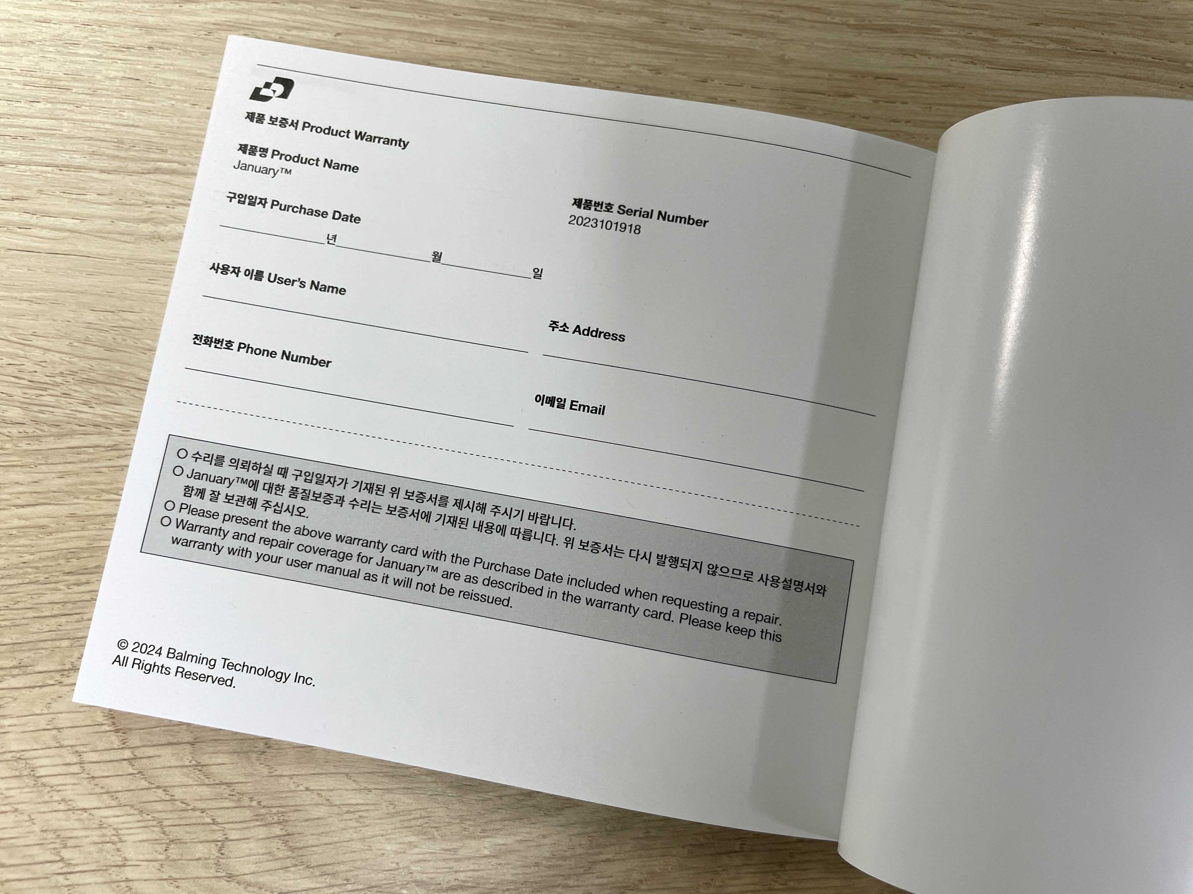부클릿 마지막 페이지는 제품 보증서다