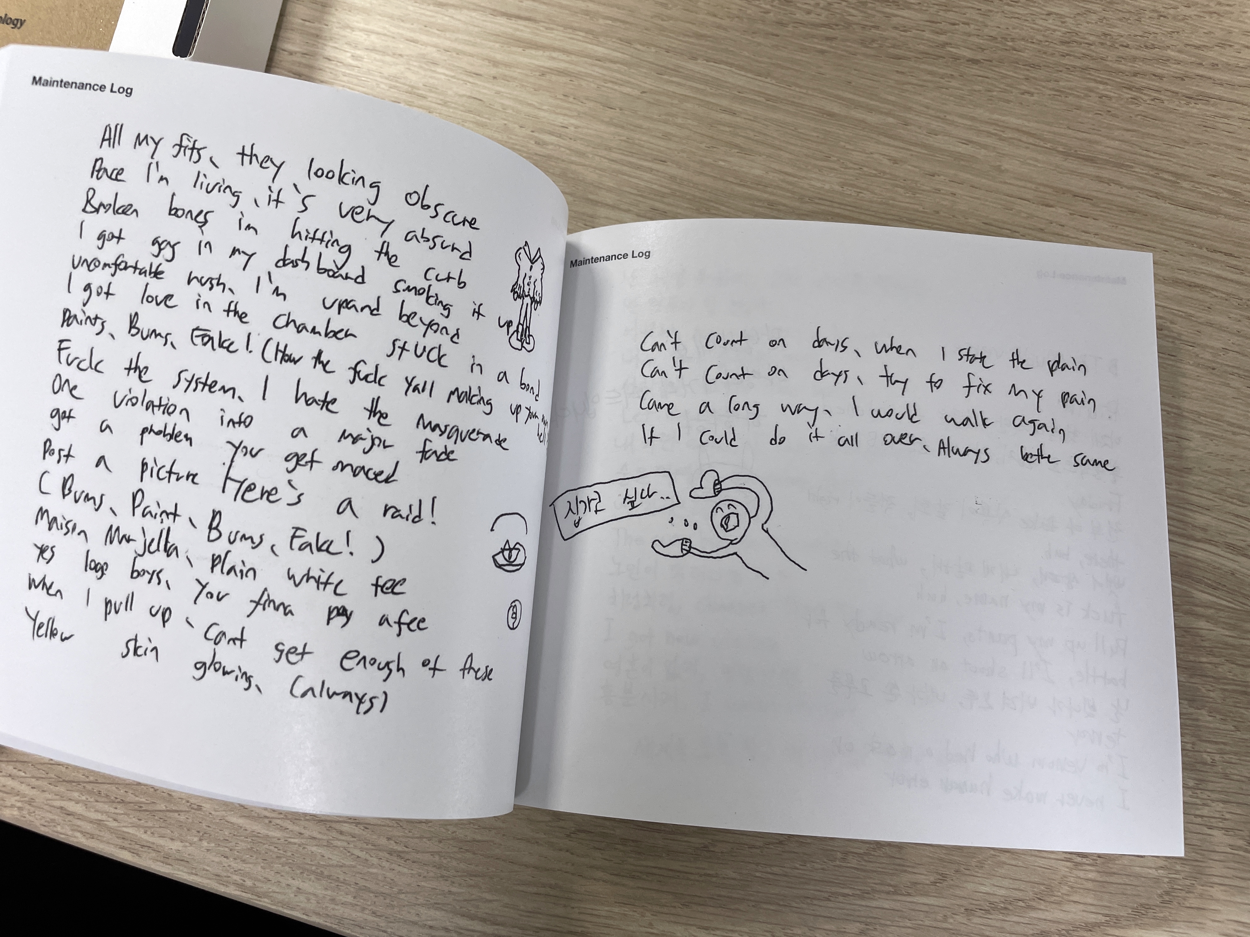 이 Maintanance Log에 띄엄띄엄 가사집도 손글씨로 쓰여져 있고
